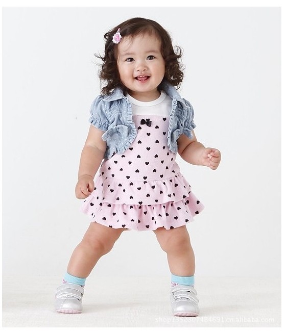 kız çocukları için pembe üzerine siyah puanlı kıyafet