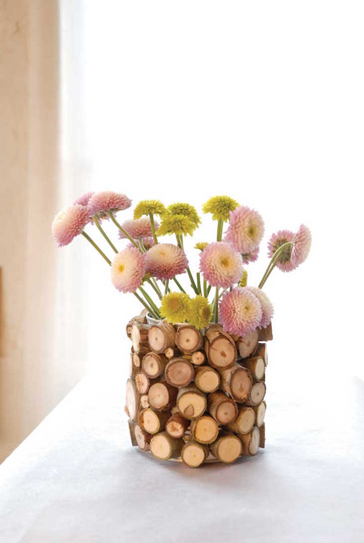 13 Odun parçaçıkları yapıştırırarak yine vazo olarak kullanabilirsiniz.