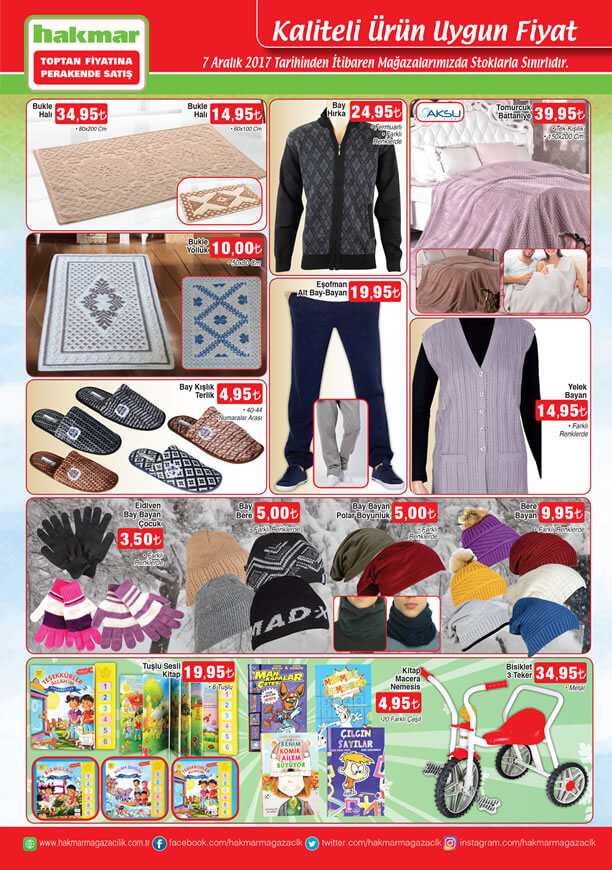 Yukarıda listelediğimiz aktüel ürünler ile birlikte Hakmar Aktüel 7 – 13 Aralık 2017 Kataloğu 2. broşür sayfası incelememizi de tamamladık.