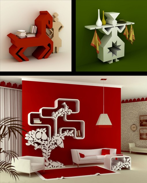 Beyaz ağaç görünümlü kitaplık modeli