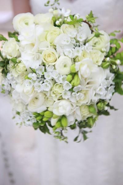 beyaz gül ve çiçeklerle meydana getirilmiş canlı çiçeklerle yapılmış bir demet