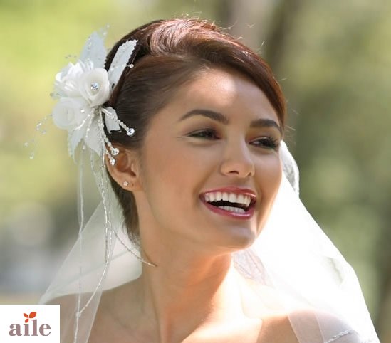 Beyaz güllü gelin duvak modelleri