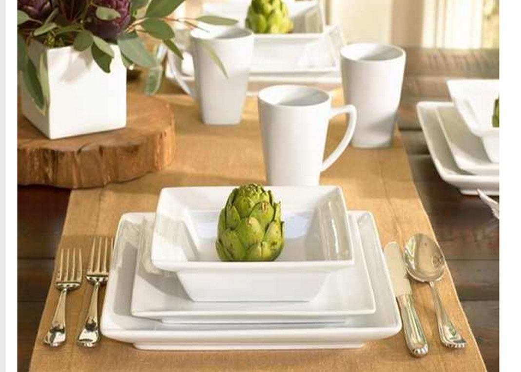 Beyaz kare desenli yemek takımı