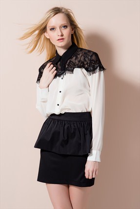 Beyaz siyah dantelli bayan gömlek modeli