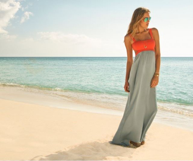 Büzgülü gri turuncu elbise modeli