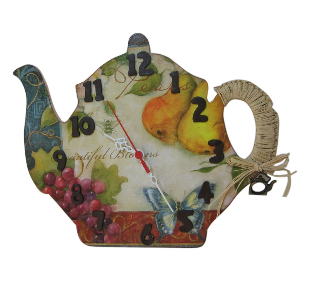 Çaydanlık figürlü mutfak saati modelleri