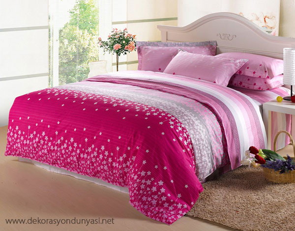Çiçekli pembe nevresim takımı modelleri