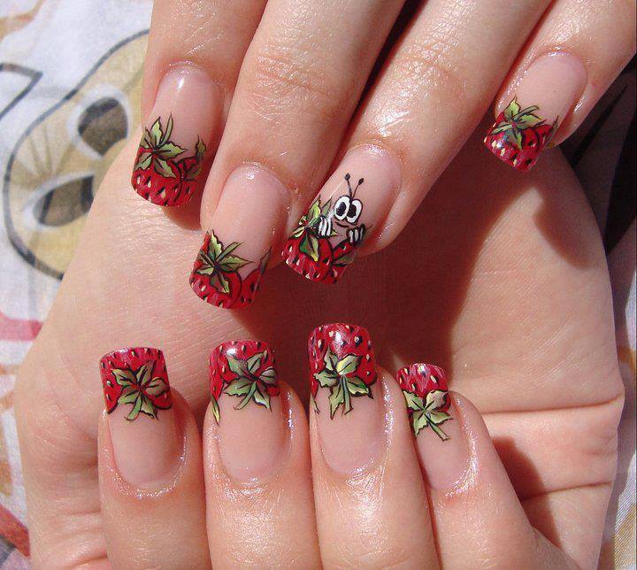 Çilek desenli tırnak oje modelleri