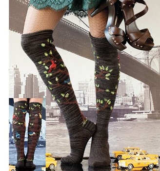 Diz altı son trend yaprak desenli bayan çorap modelleri