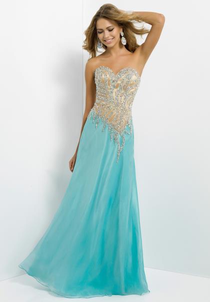 etek kısmı mavi üstü kısmı dore işlemeli straplez elbise modeli