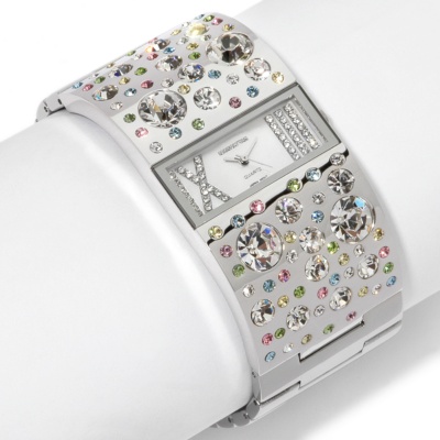 göz alıcı renkli taş tasarımlı bayan kol saati
