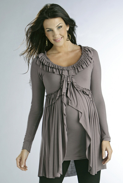 Gri fırfırlı hamile tunik modeli