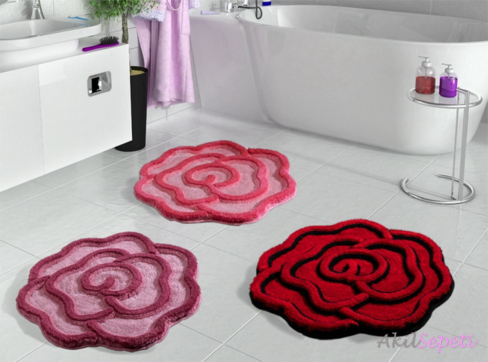 Gül desenli banyo paspas modelleri