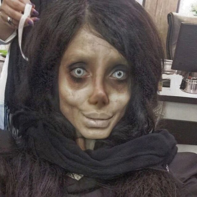 Üst üste estetik operasyonlar geçiren İranlı kadın, bu haliyle Angelina Jolie yerine, Corpse Bride (Ölü Gelin) filmindeki karaktere daha çok benzetildi.
