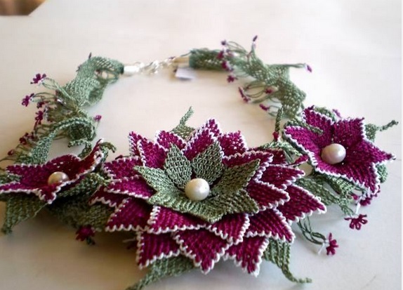İğne oyası kolye takı modeli