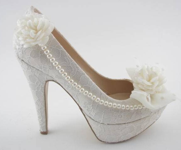 incili ve çiçekli gelin ayakkabısı