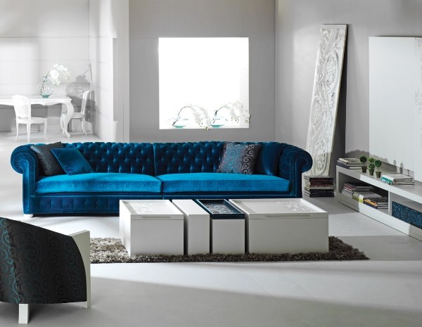 kadife gece mavisi 3 lü koltuk ve dekorasyonu