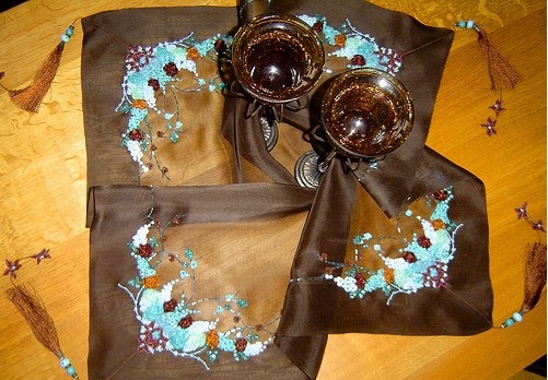 kahverengi kurdele iş nakışı