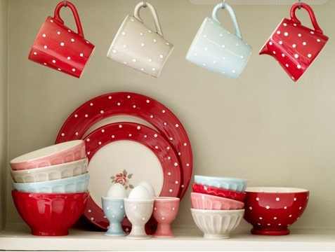 Kırmızı beyaz puantiyeli kahvaltı takımı