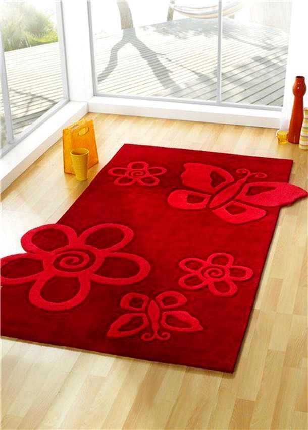 Kırmızı çiçek kabartmalı halı modelleri