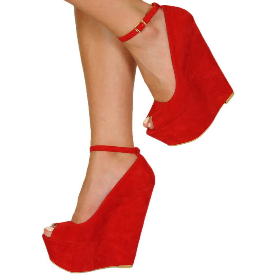 Kırmızı şık dolgu topuk ayakkabı modelleri