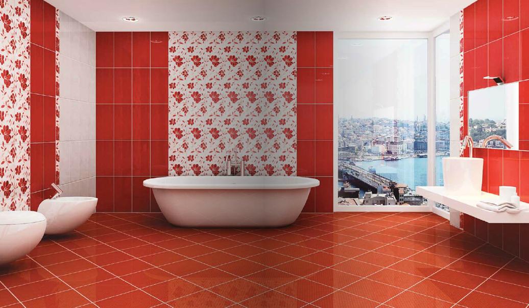 Kırmızı Ve Çiçekli Banyo Fayans Modelleri