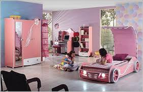 Kız çocuk arabalı yatak çocuk odası modeli
