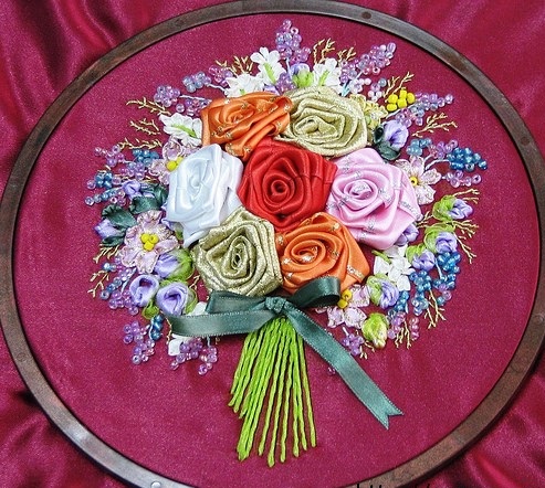 Kurdele işi kasnakta buket yapımı
