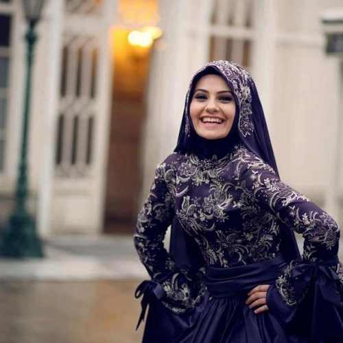 Lacivert tesettür abiye elbise modeli