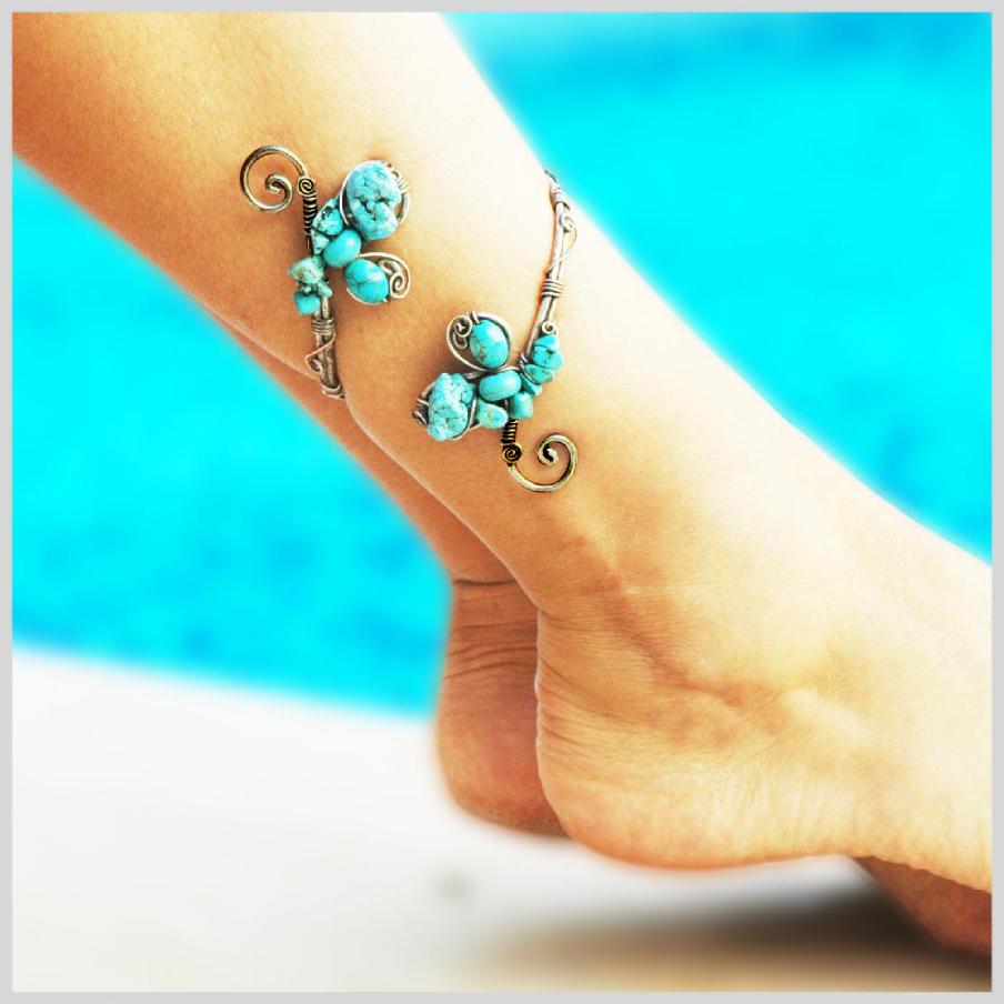 Mavi taşlı şık halhal modelleri