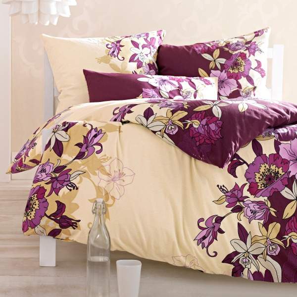 mor çiçekli krem nevresim takımı