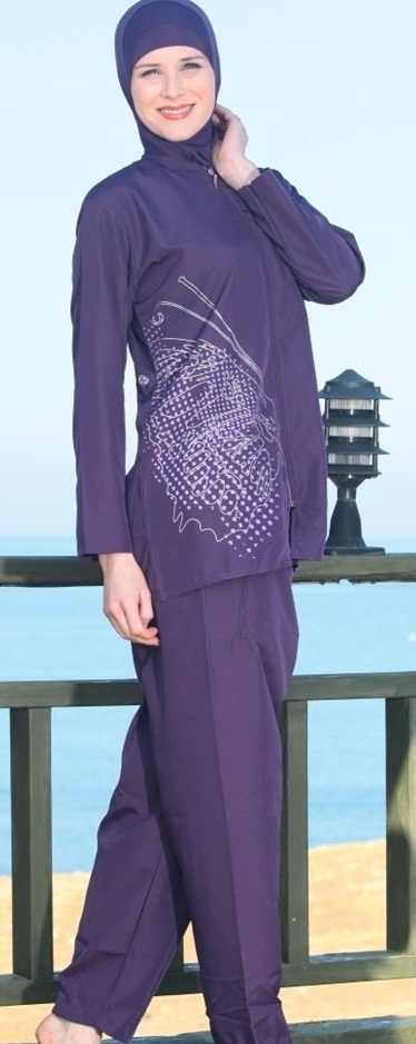 Mor şık tesettür mayo modeli