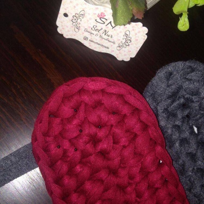 Ucuncu sırayı da resimde göründüğü gibi örüyoruz, tabanın sonuna kadar her iki ucunda, üçer arttırma yaparak devam ediyoruz ve dikkat edin arttırmalar ayni hizada olsun.