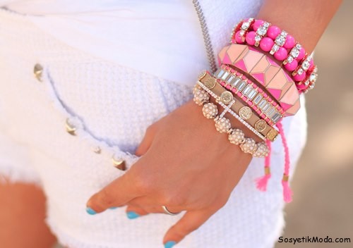 Pembe tonlarda çeşitli bileklik modelleri