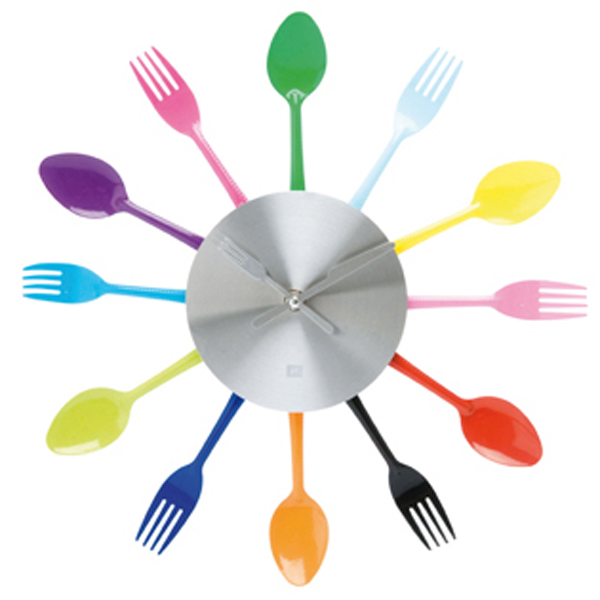 Renkli çatal kaşık modelli mutfak saati modelleri