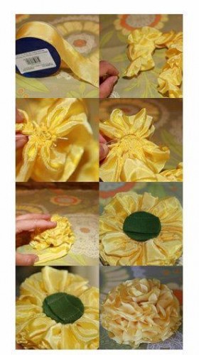 Sarı kurdele nakışı çiçek yapımı