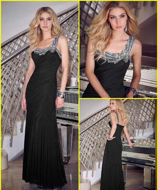 siyah tek omuzlı gümüş işlemeli bayan abiye elbise