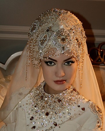 Tesettür türbanlı gelin başı modeli