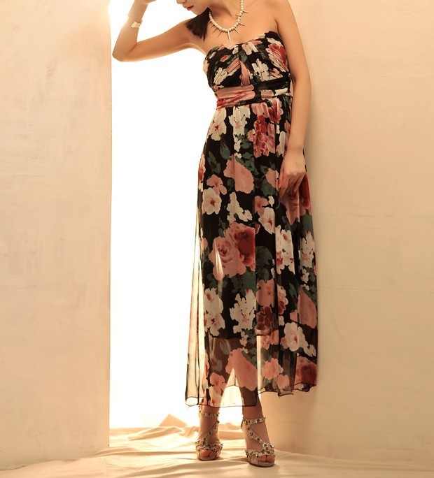 Tül hafif çiçekli elbise modeli