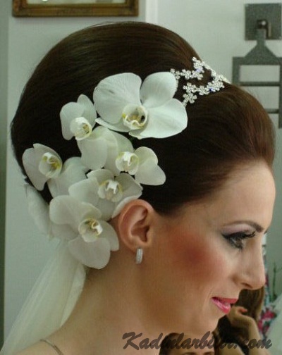 Yandan çiçekli şık gelin tacı modelleri