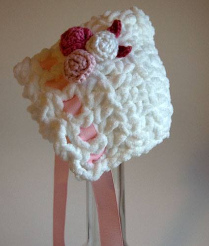 Yeni doğan bebekleriniz için kolayca örebileceğiniz bu şapkayı minik gül motifleri ile süsleyebilirsiniz..