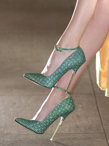 yeşil şık bilekten bağlamalı sivri burunlu ayakkabı