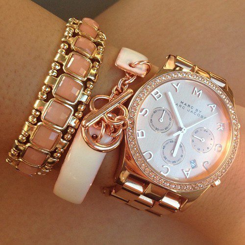 yuvarlak altın renkli saat ve aksesuarlar